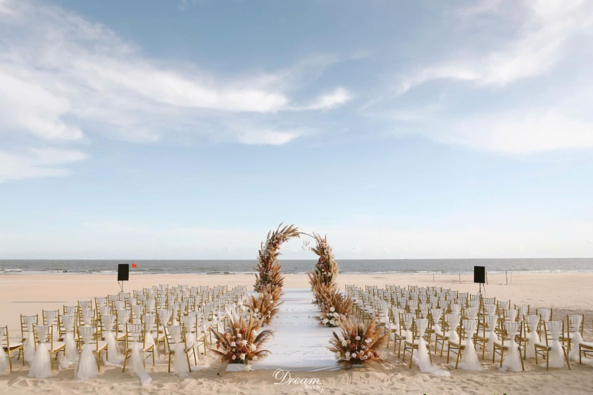2.Tổ chức đám cưới trên bãi biển – Khi bãi cát và đường chân trời trở thành phông nền của hạnh phúc