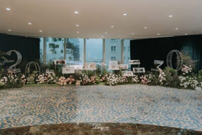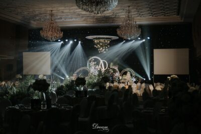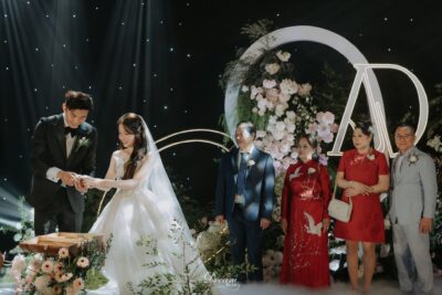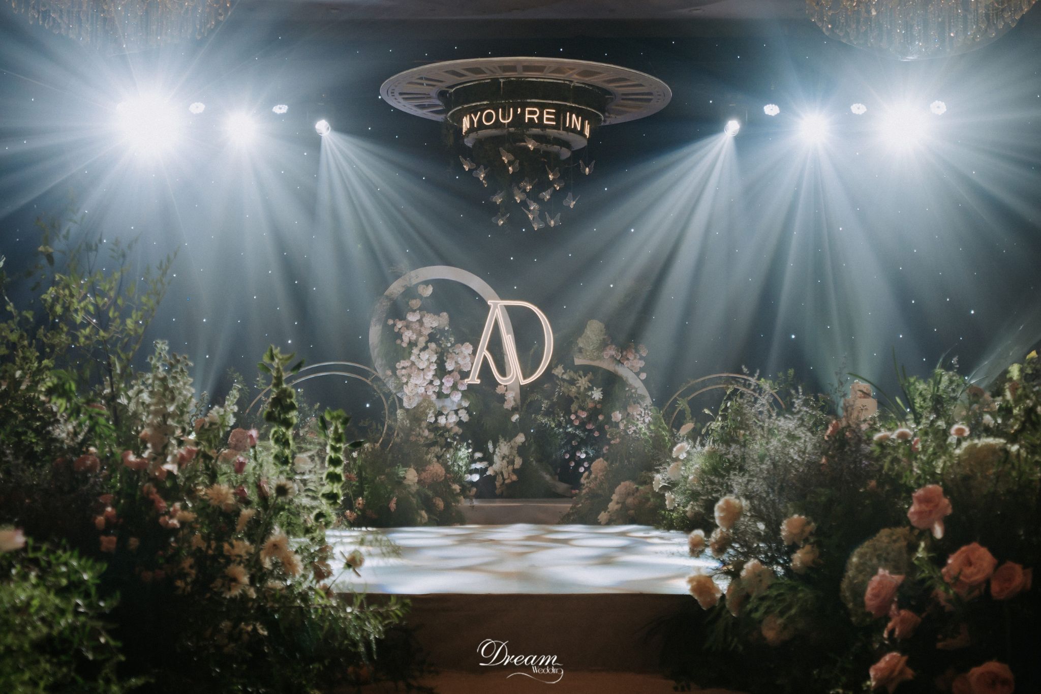 Khu vực sân khấu là linh hồn của concept – nơi hội tụ những sắc màu ngọt ngào nhưng tinh tế. Trung tâm là biểu tượng “vô cực”, không chỉ tượng trưng cho tình yêu vĩnh cửu mà còn mở ra một hành trình không điểm kết. Từng ánh đèn, từng nhành hoa được bố trí khéo léo để đưa người dự bước vào một “thế giới” riêng – nơi tình yêu không chỉ được chứng kiến mà còn được cảm nhận bằng mọi giác quan. Đó là khoảnh khắc khi An & Duyên tiến bước dưới ánh sáng dịu êm, để rồi mọi trái tim đều nhận ra rằng: tình yêu thật sự không cần phô trương, chỉ cần chân thành và trọn vẹn.