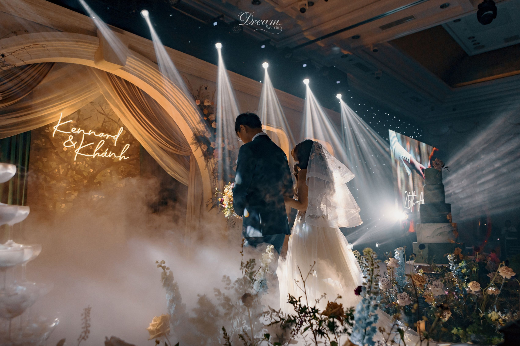 Concept đám cưới cổ điển “Palais de Flore” được tạo tác như một khu vườn kỳ ảo, tràn ngập mùi vị lãng mạn của tình yêu. Trong vườn cổ mộng mị ấy, giao ước trăm năm của Khánh và Kennard đã được hồi đáp bằng sự viên mãn và rạng ngời nhất. Đây không chỉ là một buổi lễ mà là khoảnh khắc định vị lại vẻ đẹp cổ điển, một không gian nơi cảm xúc được nâng niu để khai hoa trong cảnh sắc tuyệt hảo nhất.