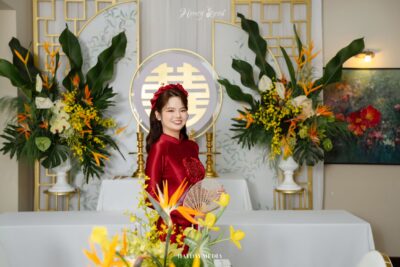 Trong sắc vàng rực rỡ tượng trưng cho hạnh phúc và thịnh vượng, buổi Lễ Vu Quy của Quang & Đan hiện lên đầy lãng mạn với phong cách Á Đông sang trọng. Ngày đại hỷ trở thành một khoảnh khắc đáng nhớ khi từng chi tiết được sắp đặt khéo léo, từ gam màu vàng nổi bật đến những đường nét trang trí tinh xảo, tất cả như hòa quyện để tôn vinh tình yêu trọn vẹn của đôi uyên ương.