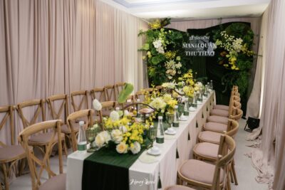 - Thực tế và dễ ứng dụng: Concept dễ linh hoạt với nhiều địa điểm (sảnh, vườn, nhà, …), phù hợp với lễ truyền thống lẫn phần tiệc, đảm bảo hình ảnh chụp ảnh và quay phim luôn đẹp trong mọi điều kiện ánh sáng.