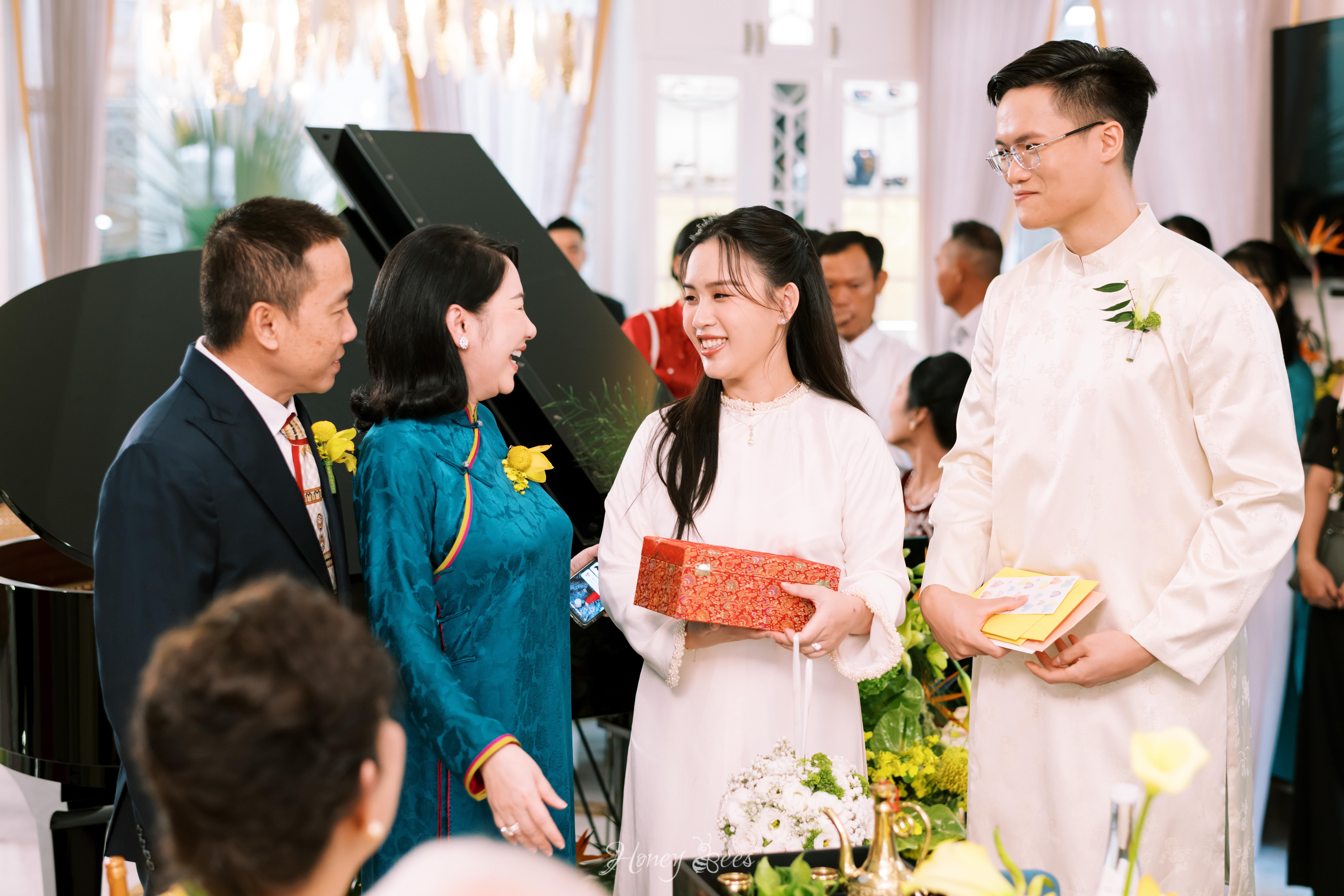 Lễ Vu Quy bao giờ cũng là dịp quan trọng để loan tin vui đến những người thân yêu của hai bên, nếu biết rằng sự đồng thuận không chỉ đến từ người thân mà còn được thiên nhiên và ánh sáng chúc phúc thì sao. “Thiên thời địa lợi nhân hoà” đã tồn tại trong văn hoá phương Đông từ lâu, như một dấu ấn chắc chắn cho bất cứ một quyết định nào, và HONEY BEES đã khéo léo đưa quan niệm ấy vào thiết kế như một tinh thần cổ vũ và chúc phúc cho tình yêu của Minh Sang và Tường An. Nếu bạn cũng muốn được tứ phương ùa về ban phúc, bạn có thể cân nhắc concept này với nhiều ưu điểm: