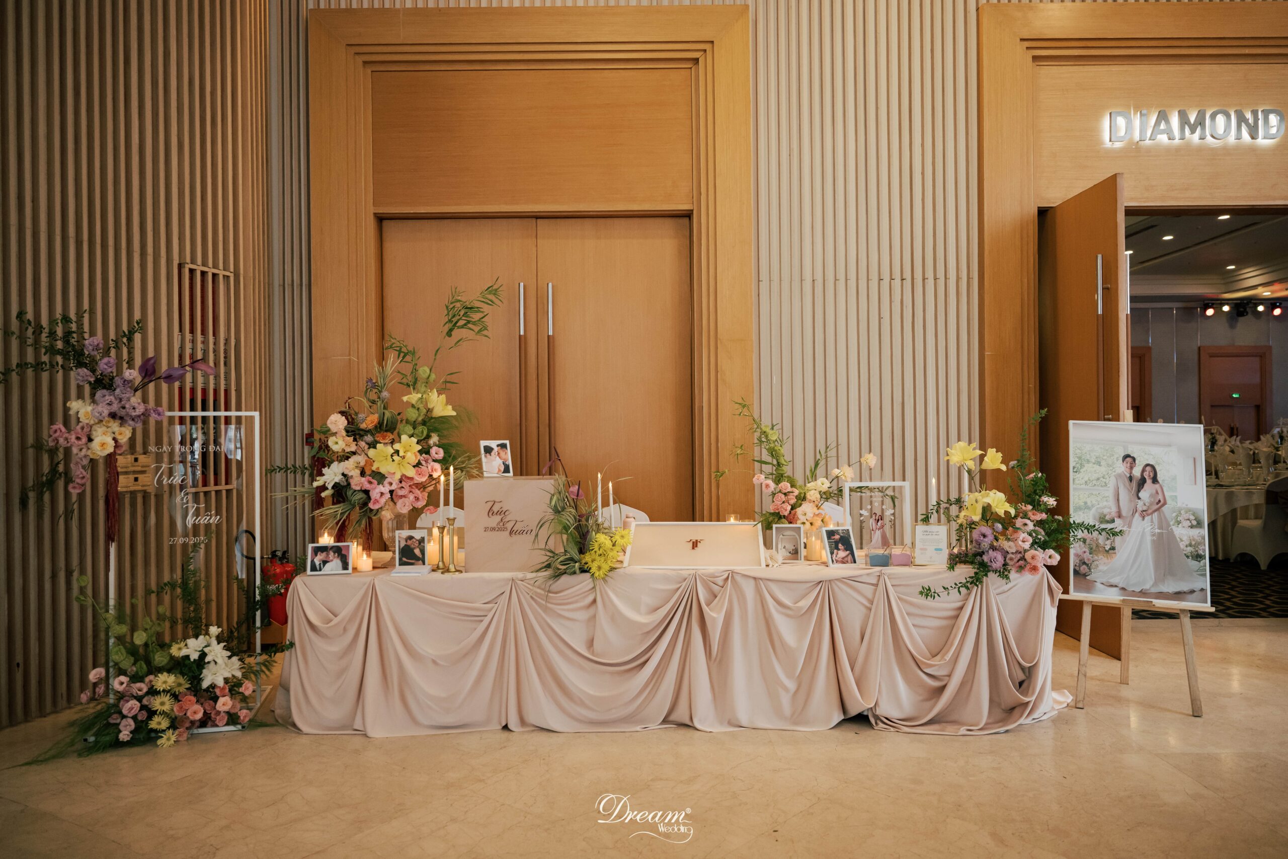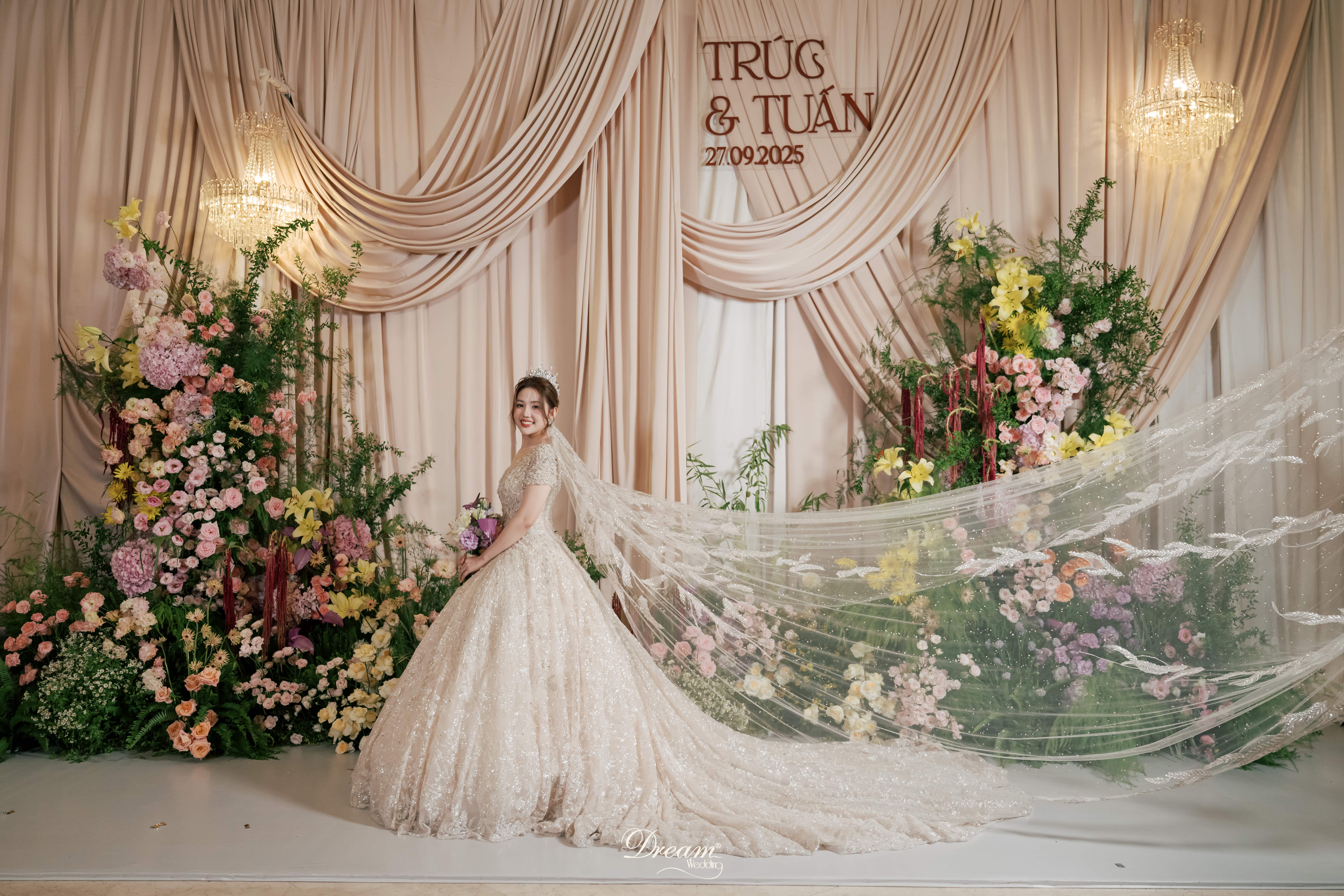 Là cặp đôi luôn mong muốn một lễ cưới mang dấu ấn cá nhân, Tuấn và Trúc đã chia sẻ khát khao về một không gian tràn ngập những cánh hoa bung nở dưới ánh nến vàng, như một khu vườn lãng mạn đang thì thầm về tình yêu”. Hiểu được điều đó, Dream Wedding đã tạo ra concept đám cưới hoa và nến “Velvet Glow” – nơi kết hợp tinh tế giữa wedding decor hiện đại và sự ấm áp truyền thống. Không gian được trang trí tỉ mỉ, vừa thơ mộng vừa sang trọng, gói trọn thông điệp về tình yêu bình yên và trọn vẹn. Tất cả điều đó đã biến ngày trọng đại của Tuấn và Trúc thành một khoảnh khắc khó quên.