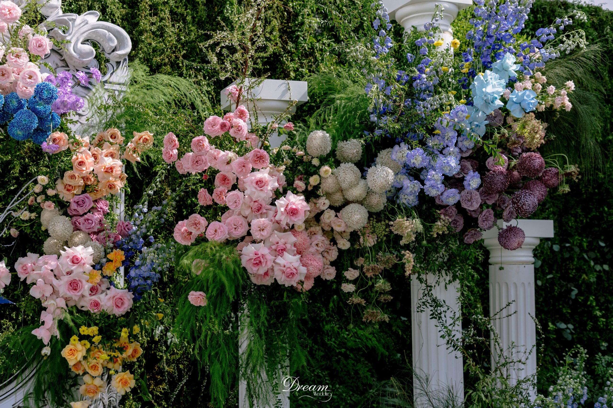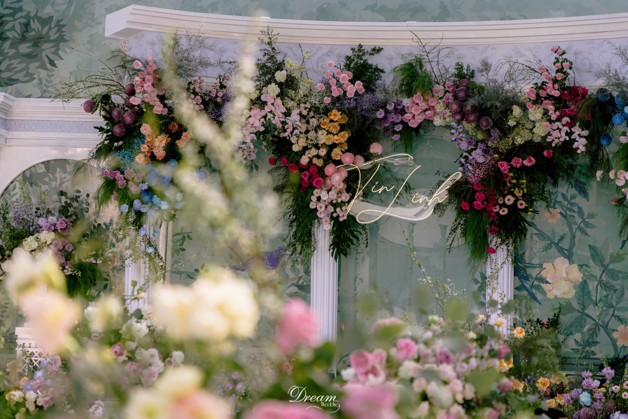 “Spring Garden” không chỉ là một chủ đề trang trí mùa xuân, mà là biểu tượng cho sự sinh sôi, tươi mới và hạnh phúc viên mãn trong mùa đẹp nhất. Lấy tông màu pastel làm chủ đạo – hồng phấn, tím, cam và xanh dương nhạt – Dream Wedding tái hiện lại khung cảnh như trong một khu vườn cổ tích, nơi tình yêu của hai người dần nở rộ như những cánh hoa đón nắng đầu mùa.