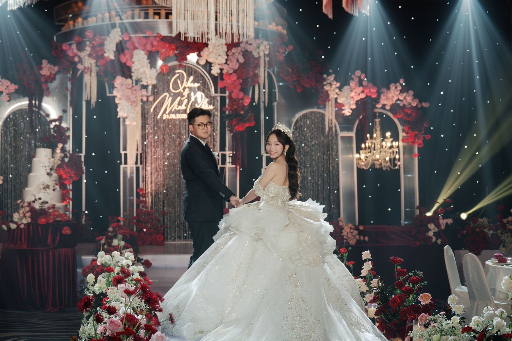 Lãng mạn theo cách riêng: Từ trang trí, âm thanh – ánh sáng đến phối màu hoa đều được cá nhân hóa để phù hợp với phong cách của Qihao và Châu. Đội ngũ của Dream Wedding đồng hành sát sao để đảm bảo mọi chi tiết đều hoàn hảo trong ngày diễn ra lễ cưới.