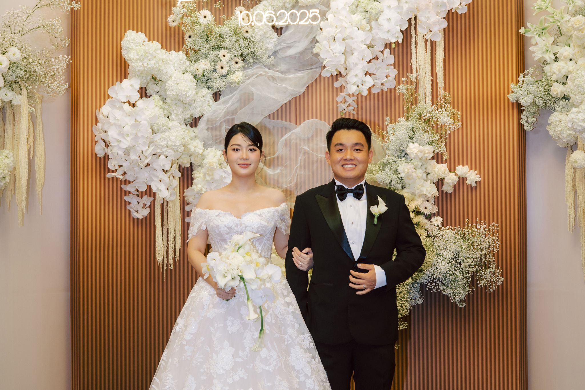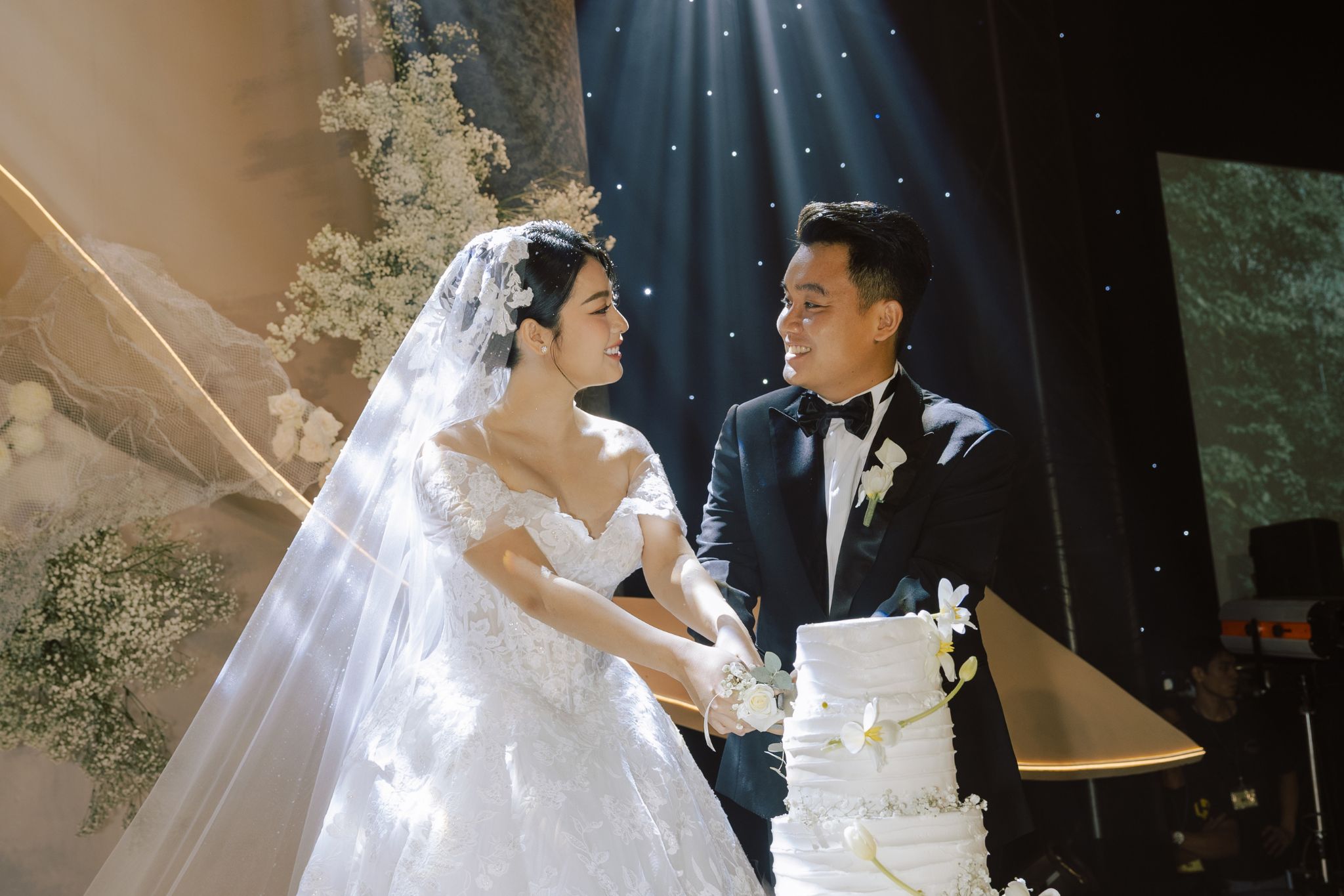 • Không gian của cảm xúc thật: Buổi tiệc không lộng lẫy đến mức xa lạ, cũng không tối giản đến mức trống trải. Nó giống như một cây đàn được chỉnh đúng tông, để từng nụ cười, từng cái ôm, từng giọt nước mắt vui đều ngân lên rõ nét. Trong khoảnh khắc được tạo nên từ sự đối lập của ánh vàng “ấm” và hoa tuyệt “lạnh”, những cảm xúc và lời nói sâu thẳm được bộc bạch một cách tự nhiên nhất.