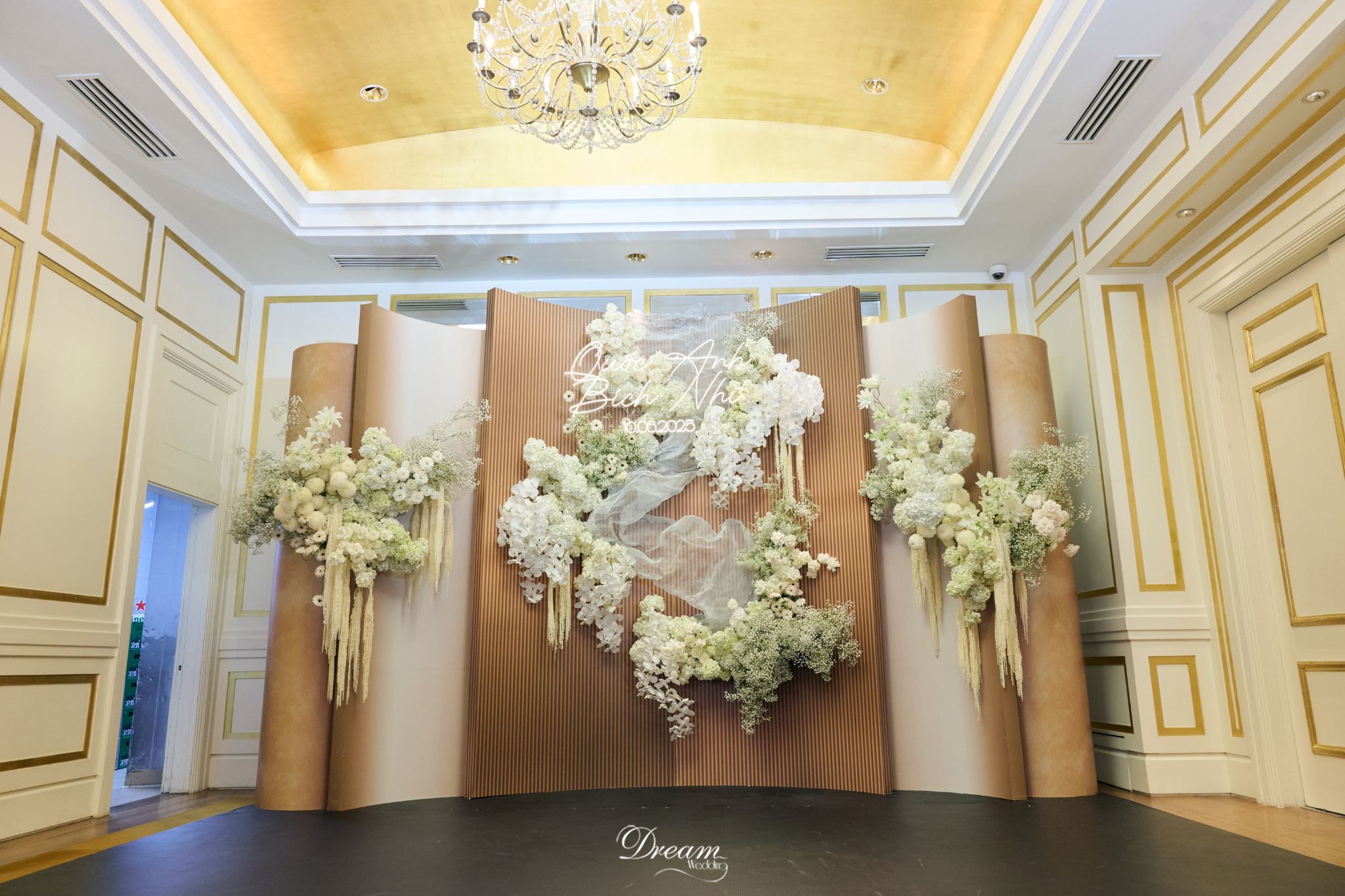 • Sang trọng nhưng ấm áp – Concept vừa có nét kiêu sa của ánh vàng, vừa có sự gần gũi của gam ấm, tạo nên một không gian đủ nghi lễ nhưng vẫn giữ hơi thở thân tình.