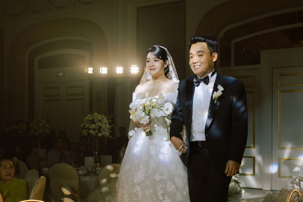 - Không gian của cảm xúc thật: Buổi tiệc không lộng lẫy đến mức xa lạ, cũng không tối giản đến mức trống trải. Nó giống như một cây đàn được chỉnh đúng tông, để từng nụ cười, từng cái ôm, từng giọt nước mắt vui đều ngân lên rõ nét. Trong khoảnh khắc được tạo nên từ sự đối lập của ánh vàng “ấm” và hoa tuyệt “lạnh”, những cảm xúc và lời nói sâu thẳm được bộc bạch một cách tự nhiên nhất.