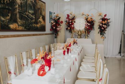 - Tạo dấu ấn thẩm mỹ riêng biệt: Không gian “Rouge Style” vừa phù hợp cho lễ gia tiên truyền thống, vừa nổi bật trong tiệc cưới hiện đại. Sự kết hợp tinh tế giữa ánh sáng vàng ấm và sắc đỏ quyền quý giúp buổi lễ trở nên rạng rỡ mà vẫn giữ được nét thanh lịch. Đây là lựa chọn lý tưởng cho những ai muốn tôn vinh tình yêu bằng phong cách đẳng cấp nhưng vẫn gần gũi, ấm áp.