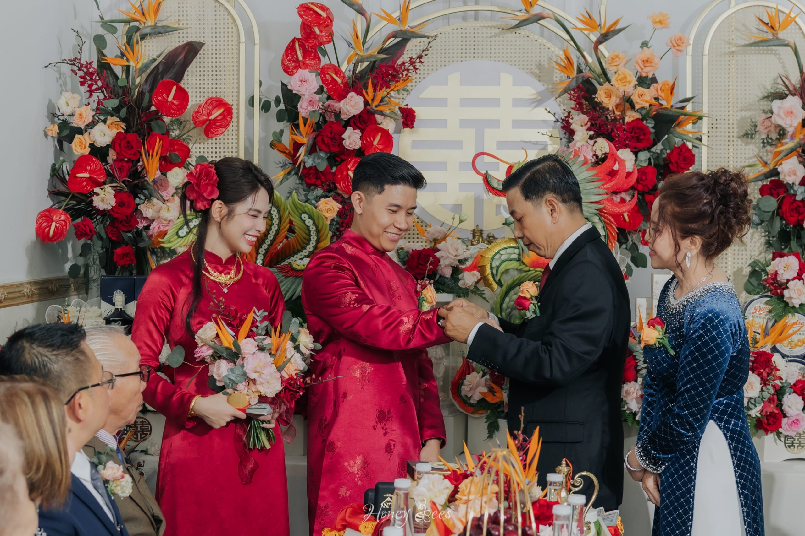 Với Hân và Sang, tình yêu không cần quá nhiều lời nói. Mỗi ánh nhìn, nụ cười và cử chỉ dịu dàng của họ đã đủ kể trọn câu chuyện – một câu chuyện về sự đồng điệu và gắn bó. Tình yêu ấy được thể hiện một cách tinh tế qua concept “Rouge Style”, nơi HONEY BEES đã khéo léo thổi hồn vào từng chi tiết, để buổi lễ không chỉ là ngày cưới, mà là một khoảnh khắc rực sáng của hạnh phúc và đam mê.
