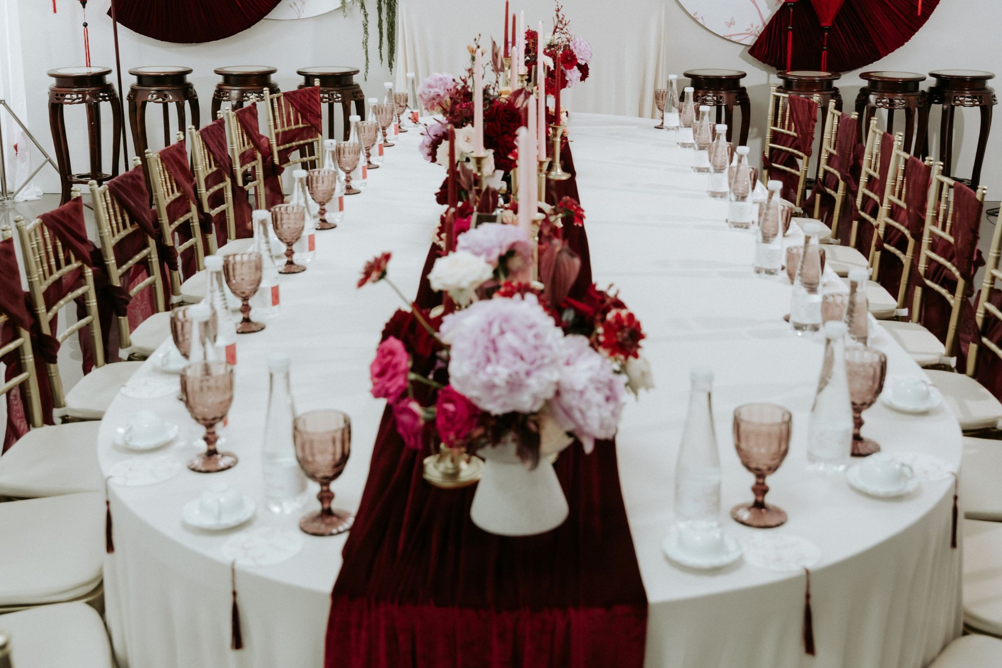 - Màu sắc mang chiều sâu cảm xúc: Đỏ rượu vang không rực rỡ chói lóa mà trầm ấm, đủ để tạo cảm giác sang trọng và cũng đủ để làm nổi bật những khoảnh khắc riêng tư, sâu lắng của cặp đôi.