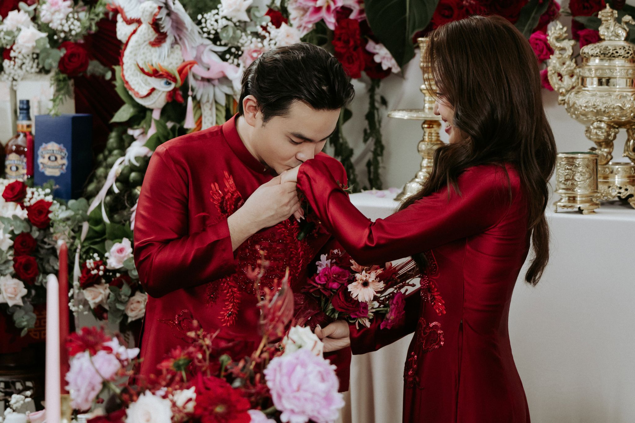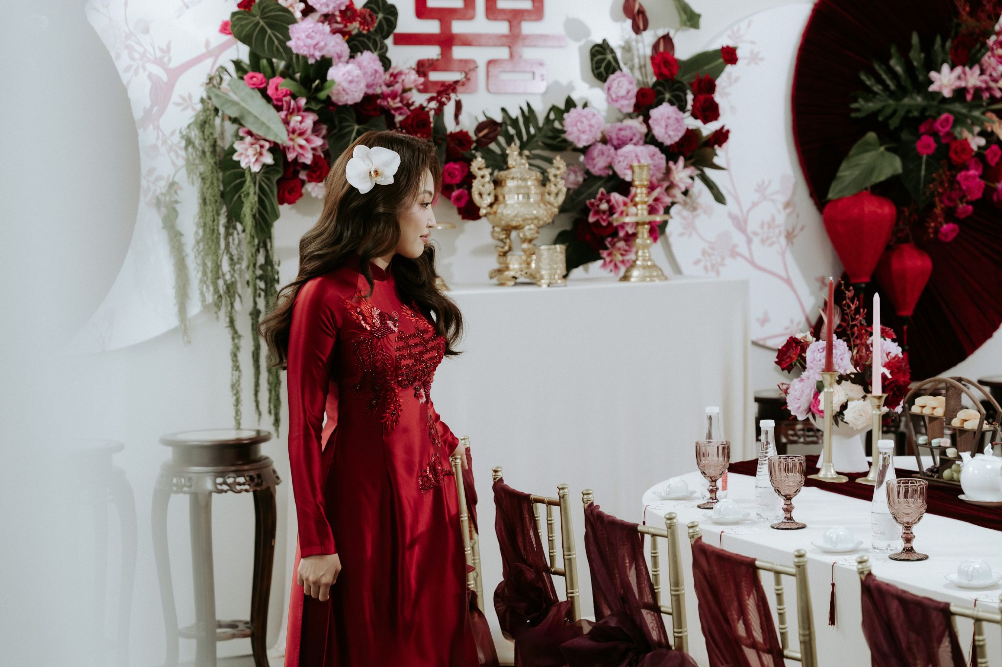 - Tôn vinh giá trị truyền thống một cách tinh tế: Concept giữ lại những biểu tượng quen thuộc như sắc đỏ, đèn lồng, chữ Hỷ… nhưng được làm mới bằng cách thể hiện hiện đại, giúp buổi lễ vừa gần gũi vừa khác biệt.