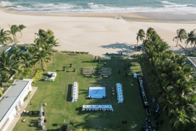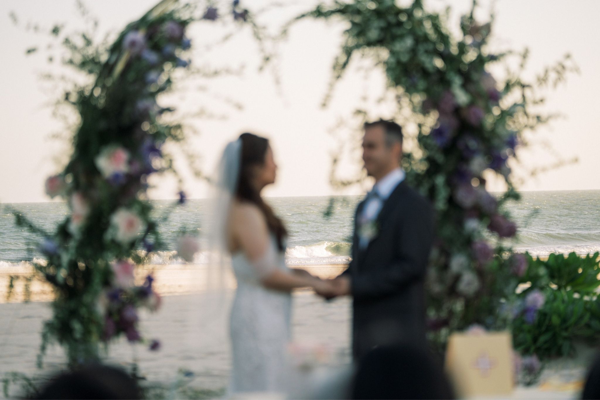 Giữa khung cảnh của Meliá Hồ Tràm, sắc tím không xuất hiện một cách tách biệt, mà hòa vào không khí – như một lớp sương mỏng phủ lên biển chiều. Ánh sáng, gió và màu sắc đan xen, khiến không gian trở nên mềm đi, dịu lại. Và chính trong sự dịu dàng ấy, tình yêu của Troy và Vân hiện lên rõ ràng hơn – không cần phô bày, chỉ cần một ánh nhìn, một nụ cười cũng đủ để người khác hiểu rằng họ đã chọn đúng người để đồng hành.