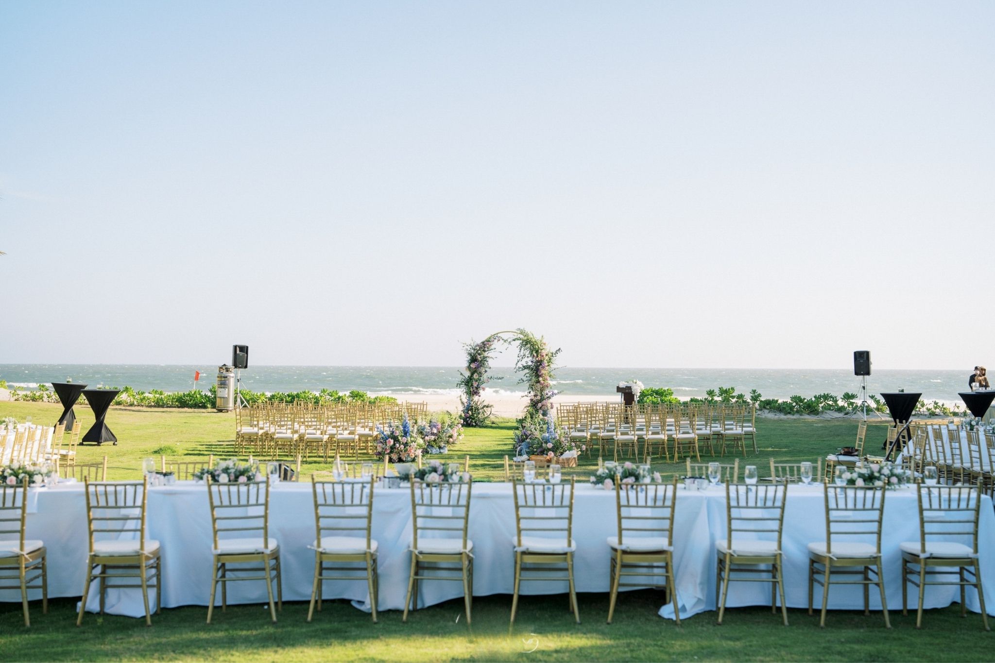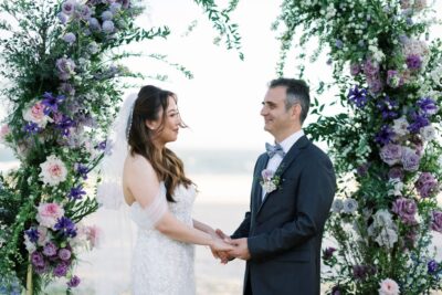 Được xây dựng trên nền tím lavender – một gam màu mang theo sự lãng mạn, nhưng concept đám cưới sắc tím “Lavender Short Mist” được xử lý đủ nhẹ để không trở nên quá mộng mị. Khi đặt cạnh sắc xanh của biển và ánh vàng của nắng chiều, tím không còn là một màu sắc đơn thuần, mà trở thành một trạng thái cảm xúc – mềm mại, sâu lắng và có phần trưởng thành.
