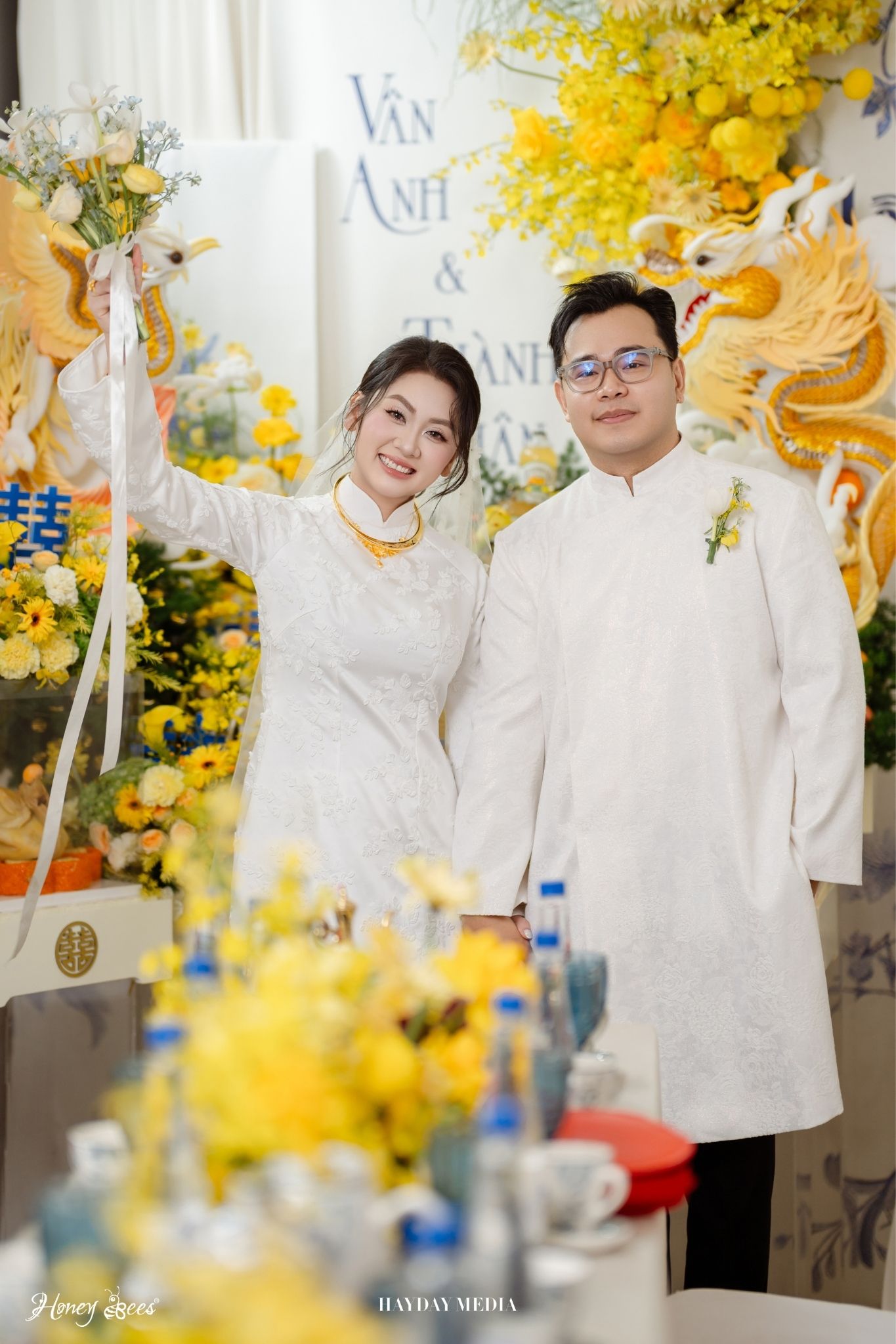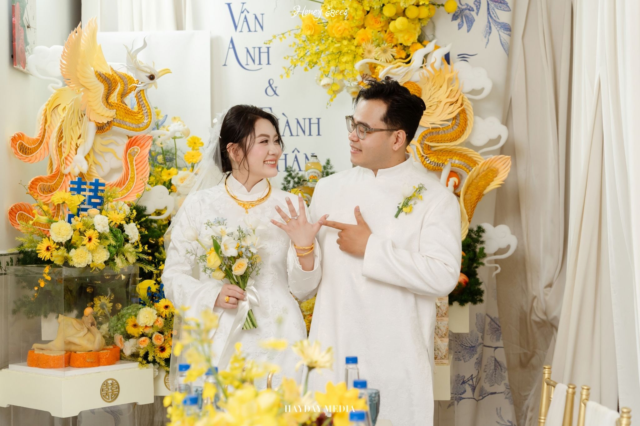 Gam màu vàng rực rỡ được sử dụng như điểm nhấn chủ đạo, gợi lên hình ảnh ánh nắng – biểu tượng của hy vọng, sự sống và đánh dấu cho một khởi đầu mới. Khi kết hợp cùng họa tiết hoa lá, không gian trở nên vừa thanh lịch, vừa quyến rũ, cứ như thiên nhiên đang gửi lời chúc phúc dịu dàng dành cho hành trình hôn nhân của Thành Nhân và Vân Anh. Đó chính là tinh thần của concept đám cưới nắng ấm “Blooming Sun”.