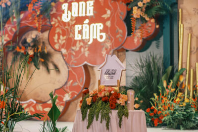 Concept đám cưới Đông Dương “Indochine Lux” không chỉ là phong cách trang trí, mà là một cuộc gặp gỡ tinh tế giữa nét duyên phương Đông và sự thanh lịch của Pháp. Tông màu đỏ – cam – xanh lá – nâu được phối hòa như một bản sắc riêng: đỏ tượng trưng cho may mắn, cam cho sự ấm áp, xanh lá cho sức sống và nâu cho nền tảng vững bền.