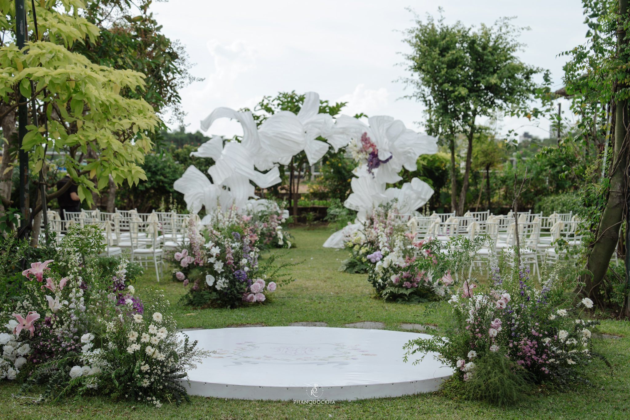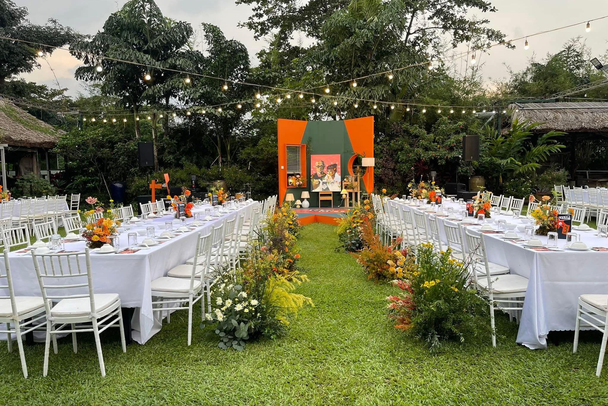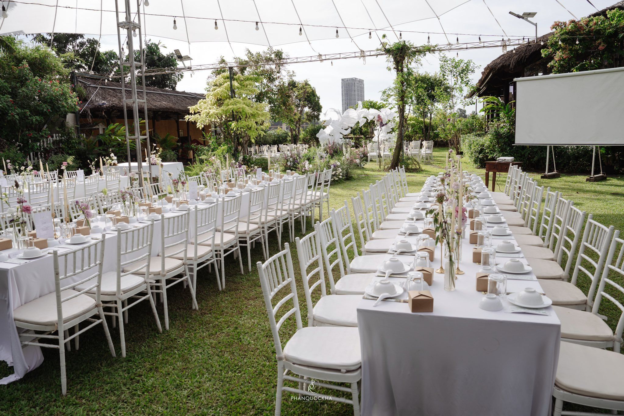 Bình An Village không chỉ là khu nghỉ dưỡng mà còn là địa điểm tổ chức tiệc cưới và sự kiện ngoài trời đầy lãng mạn, bao quanh bởi vườn cây xanh và mặt hồ phẳng lặng. Mỗi bữa tiệc tại đây đều được chăm chút tỉ mỉ, mang đến trải nghiệm gần gũi mà sang trọng.