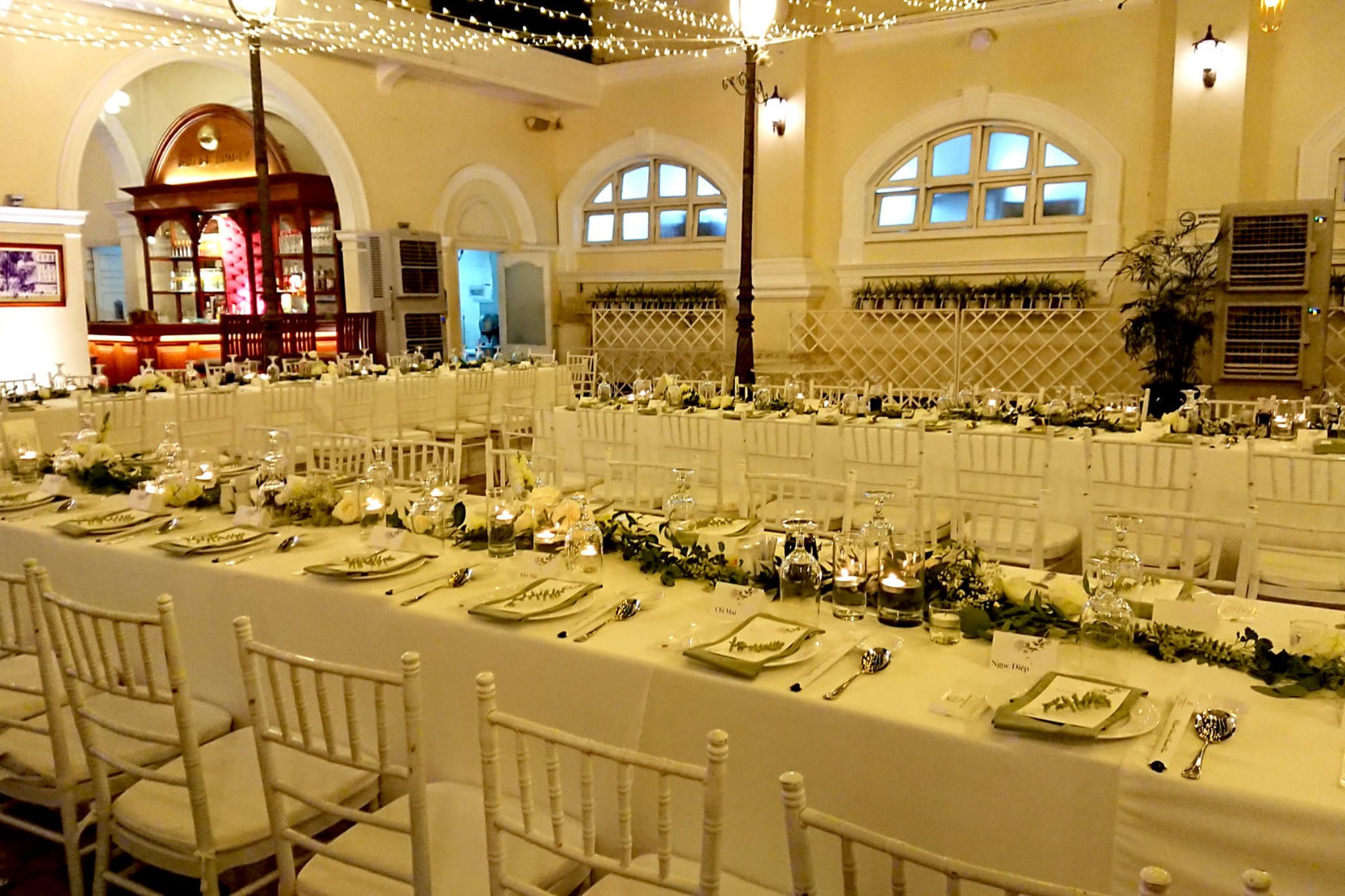 Hotel Continental Saigon có nhiều năm kinh nghiệm trong việc tổ chức tiệc cưới và là sự lựa chọn hoàn hảo cho các cặp đôi luôn tìm kiếm phong cách cưới sang trọng nhưng không kém phần độc đáo mang đậm dấu ấn của mình. Khách sạn có nhiều sảnh tiệc được trang trí theo phong cách cổ điển và lịch sử, phù hợp với mọi quy mô và yêu cầu của bạn. Bạn có thể chọn sảnh tiệc có sức chứa từ 50 đến 300 khách, với âm thanh ánh sáng hiện đại và dịch vụ phục vụ tận tâm.