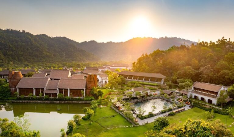 Resort gồm 133 phòng và suite, được xây dựng hoàn toàn bằng vật liệu truyền thống như gạch đất nung, tre, đồng và gỗ lim – không chỉ thân thiện với môi trường mà còn gợi cảm giác an yên, ấm áp. Mỗi căn phòng đều mở ra khung cảnh núi non trầm mặc, nơi mây vờn quanh mái ngói, mang lại cảm giác thanh tịnh tuyệt đối.