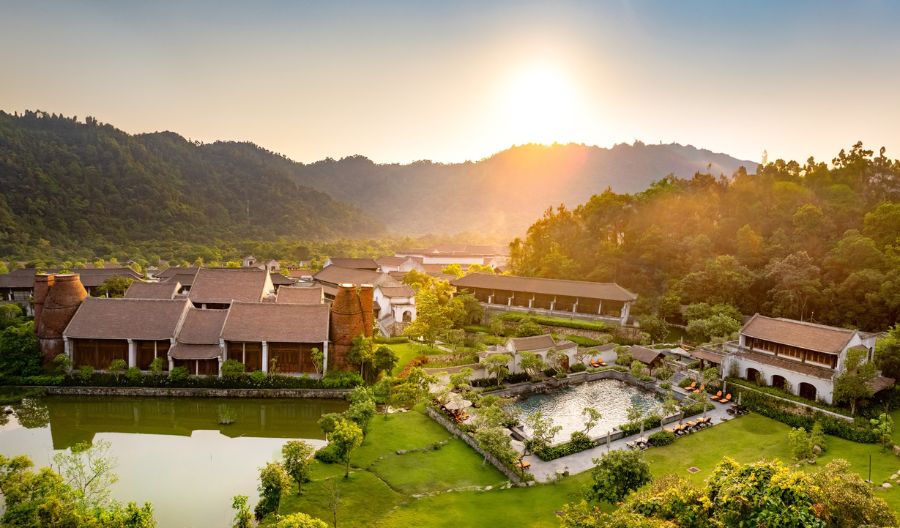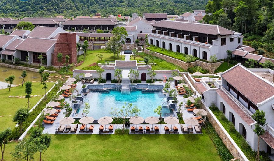 Resort gồm 133 phòng và suite, được xây dựng hoàn toàn bằng vật liệu truyền thống như gạch đất nung, tre, đồng và gỗ lim – không chỉ thân thiện với môi trường mà còn gợi cảm giác an yên, ấm áp. Mỗi căn phòng đều mở ra khung cảnh núi non trầm mặc, nơi mây vờn quanh mái ngói, mang lại cảm giác thanh tịnh tuyệt đối.
