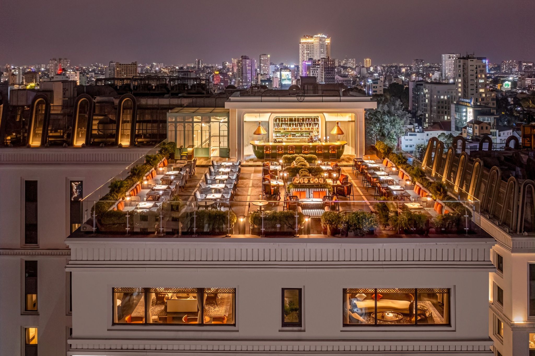 Mỗi phòng tại Mai House Saigon được thiết kế thanh lịch với đường nét cổ điển, ánh sáng ấm áp và tầm nhìn bao quát thành phố. Du khách có thể thư giãn tại La Vie Spa, thưởng thức ẩm thực cao cấp tại C’est La Vie Restaurant, hoặc nhâm nhi ly cocktail tinh tế tại The Fifth Element Bar.