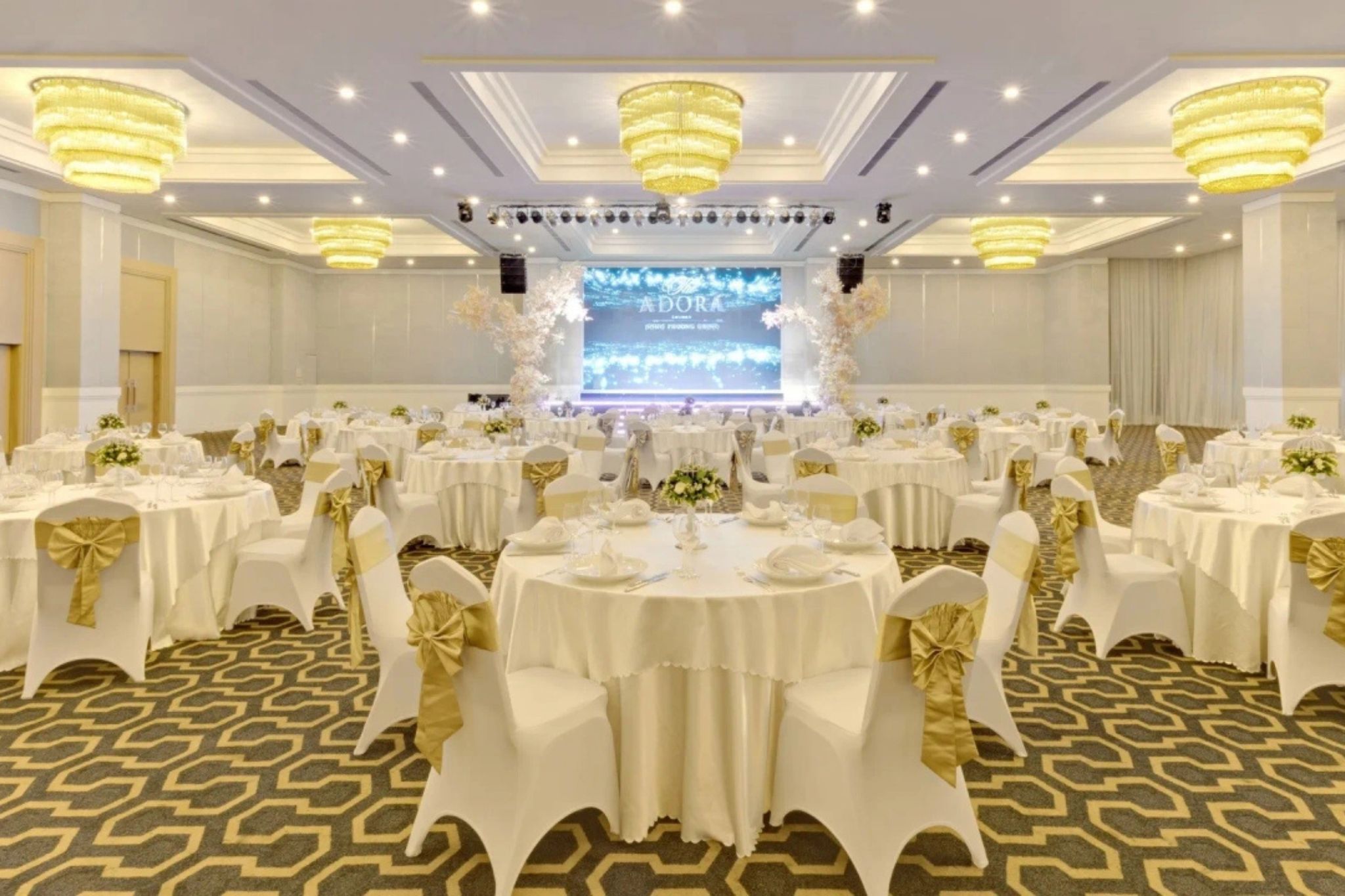 Trung tâm sở hữu hệ thống sảnh tiệc đa dạng, linh hoạt về quy mô và phong cách, đáp ứng từ tiệc cưới, hội nghị đến các buổi gala cao cấp. Dịch vụ tổ chức chuyên nghiệp, ẩm thực tinh tế cùng đội ngũ vận hành giàu kinh nghiệm giúp mỗi sự kiện tại The Adora Luxury diễn ra chỉn chu, trọn vẹn và để lại dấu ấn lâu dài cho khách mời.