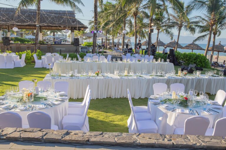 Khu nghỉ dưỡng sở hữu hệ thống phòng nghỉ và villa rộng rãi, nhiều hồ bơi ngoài trời, nhà hàng quốc tế cùng spa chăm sóc sức khỏe chuẩn Meliá. Đặc biệt, không gian tổ chức tiệc cưới và sự kiện được bố trí linh hoạt, từ bãi biển riêng lãng mạn đến sảnh tiệc trong nhà trang nhã, phù hợp cho những lễ cưới tinh tế, gần gũi thiên nhiên. Phong cách phục vụ chuyên nghiệp và vị trí thuận lợi giữa Đà Nẵng – Hội An càng làm nổi bật giá trị nghỉ dưỡng nơi đây.