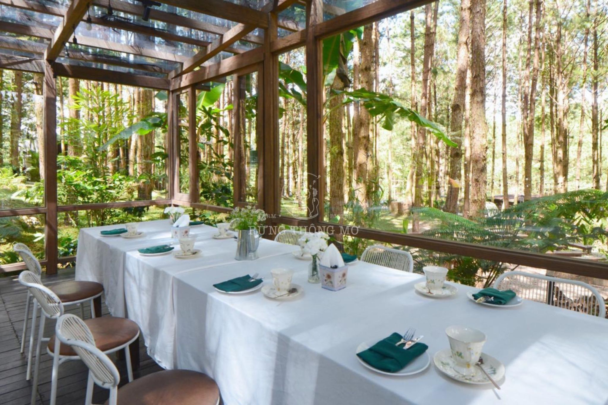 Không gian quán mở hướng ra rừng thông, yên bình và thơ mộng, đặc biệt thích hợp cho những buổi sáng thong thả hay bữa tối BBQ dưới ánh đèn vàng ấm áp. Đến với Rừng Thông Mơ, du khách không chỉ thưởng thức ẩm thực tinh tế mà còn được sống chậm, hít hà hương thông trong lành và cảm nhận nhịp đập dịu dàng của Đà Lạt.
