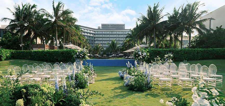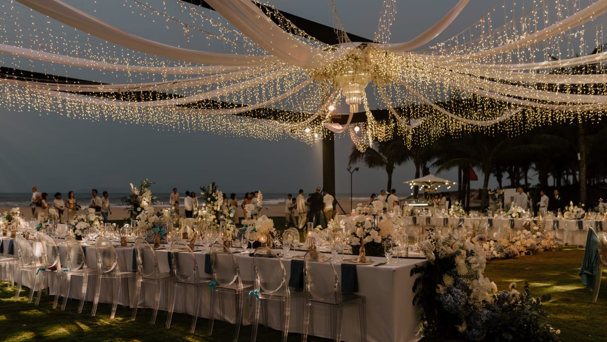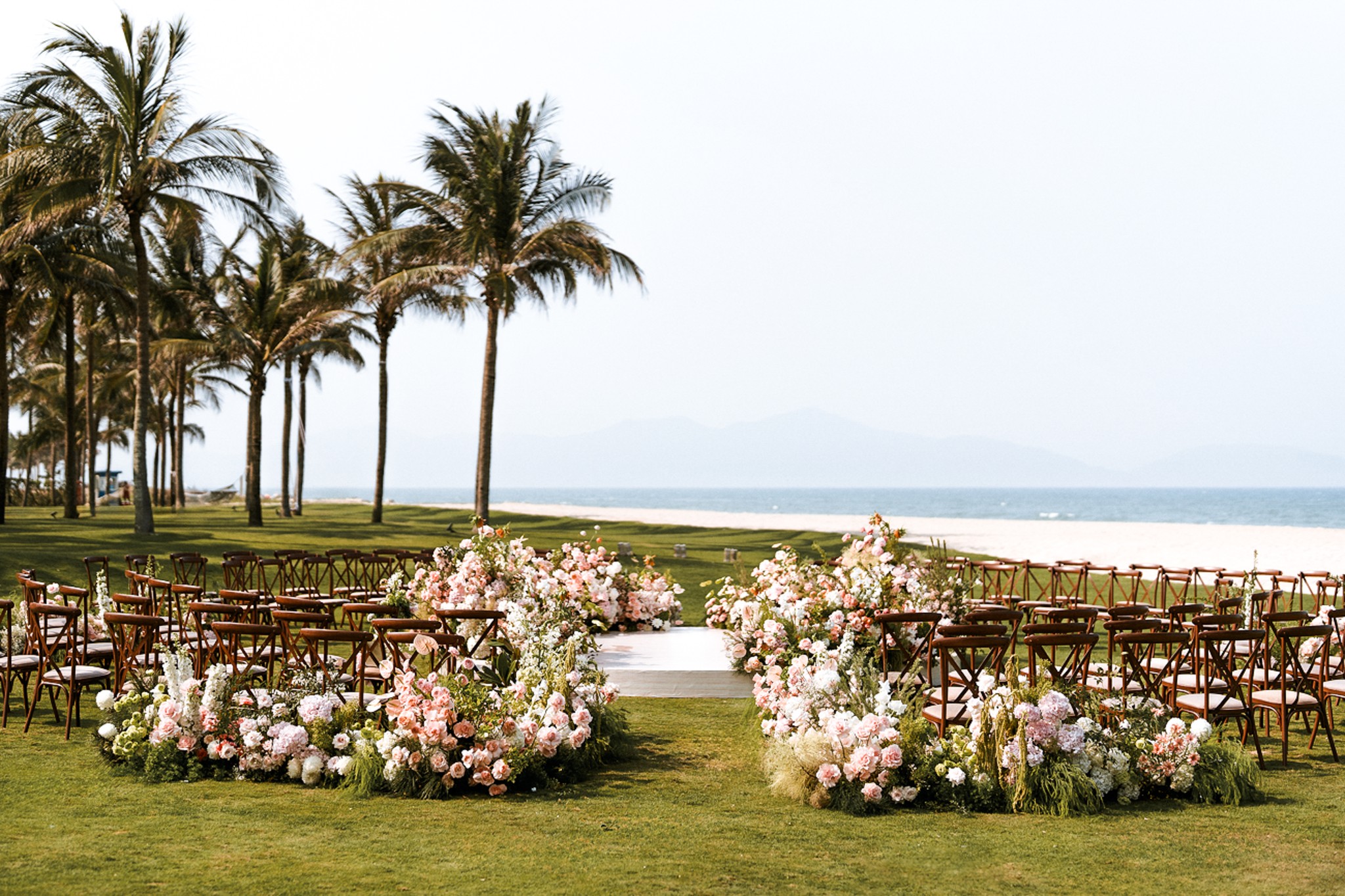 Không gian cưới tại Shilla Monogram mở ra trước mắt làn nước trong xanh và dải cát trắng mịn. Các cặp đôi có thể lựa chọn đám cưới trên biển – nghi lễ cưới diễn ra trên bãi biển riêng với backdrop là hoàng hôn vàng rực, hoặc tiệc cưới sang trọng tại ballroom với thiết kế hiện đại, tinh giản nhưng tràn ngập ánh sáng tự nhiên. Mỗi chi tiết – từ hoa tươi, thực đơn ẩm thực đến âm thanh ánh sáng – đều được chăm chút tỉ mỉ, mang đến một ngày trọng đại trọn vẹn cảm xúc.